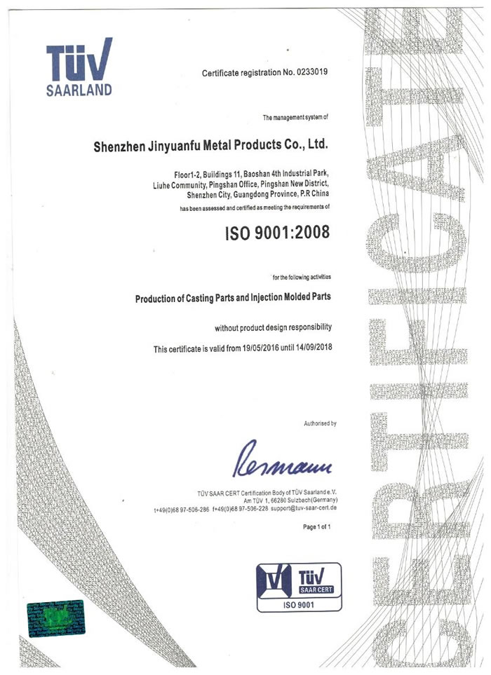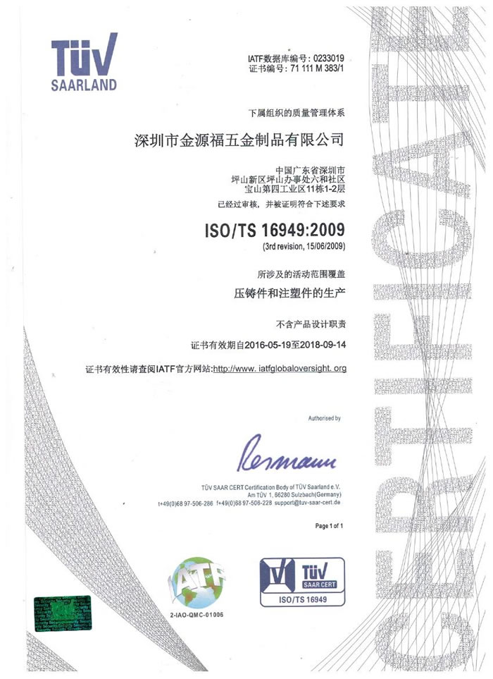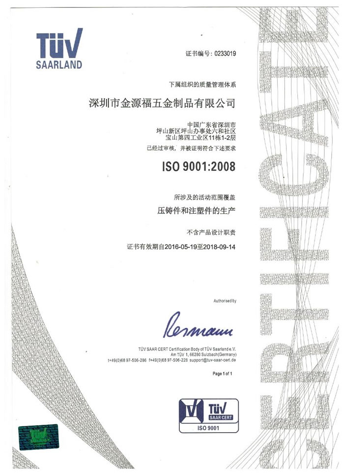 深圳市金源福五金制品有限公司成立于2003年。公司擁有8000多平方米生產廠地、開發(fā)與管理精英人才、技術專業(yè)、設備精良、交通便利、服務周全、具體設計、開發(fā)、制模、出樣、生產到成品出貨一體化模式生產廠家。已通過ISO9001:2008ISO1440/TS16949:2009國際質量體系認證。專業(yè)生產鋅合金壓鑄、鋁合金壓鑄產品、汽車配件、汽車后視鏡支架、車載導航散熱器、LED散熱器、LED燈罩、數碼電子五金結構件、家具五金裝飾件、標牌(LOGO)等五金壓鑄產品。
